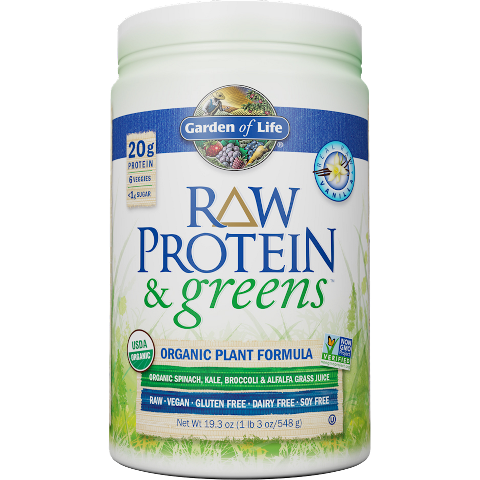 Garden of Life combined the power of clean organic protein and the nutrient-rich energy of organic greens! RAW Protein & greens are CLEANCertified USDA Organic and Non-GMO Project Verifiedand Garden of Life think that CLEAN tastes better! Now you have even more choices with your protein: RAW Protein & greensin a variety of available flavors, including Real RAW Vanilla, Chocolate Cacao, and Lightly Sweet. Offering 20 grams of smooth, raw organic plant protein per serving from organic sprouted brown rice, organic peas, organic chia, organic navy beans, organic lentil beans and organic garbanzo beans and 6 organic greens and veggiesorganic alfalfa grass juice, organic spinach, organic kale, and organic broccoli, carrots and beets1.5 billion CFU probiotics, 13 non-GMO enzymes, 3 grams of organic fiber and less than 1 gram of naturally occurring sugar, RAW Protein & greens is a delish way to get your protein and greens in one serving. And its CLEAN, TRACEABLE and PURE. RAW Protein & greens Benefits: RAW organic plant protein to support healthy muscles* Supports healthy digestion* Green energy* from raw, organic greens and green juices Great for the whole family Perfect in your favorite recipes Available in a variety of delicious flavors RAW Protein & greens a lightly sweet, delicious, CLEAN way to get your protein & greens all at once.